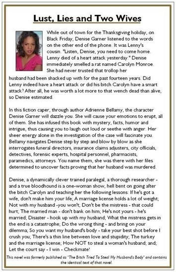 I would like to reiterate if you have purchased and/or read "The Bitch Tried To Steal My Husband's Body," you should be advised that "Lust, Lies and Two Wives" is an identical novel.